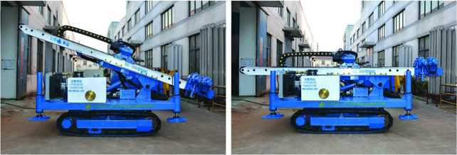 3 .同比MGL—135D鉆機施工效率提高了20左右。扭矩、轉速可以根據(jù)實際需要進行合理匹配,推進架 行程力3.4米,可進行3米的鈷桿、套管復合鈷進,可以根據(jù)不同的地層配置相應扭矩的回轉器,提高了鉆機 的適應性。配有履帶底盤、高位旋轉平臺、大直徑的支腿油缸、0.9米的滑架、孔口支撐裝置,使鈷機移位、 定位為方便,鉆進時穩(wěn)定可靠。配有夾持卸扣器,使裝卸鉆桿、套管勞動強度低、效率高。